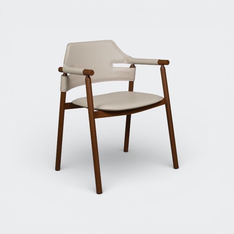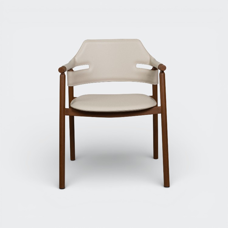 כסא אוכל סלינה מתכת אגוז ד.עור אבן